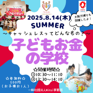 夏休み企画、西宮阪急にて「子どもカレッジ」が開催されています。 8/14(木)は当社が「子どもお金学校」を開催します!
